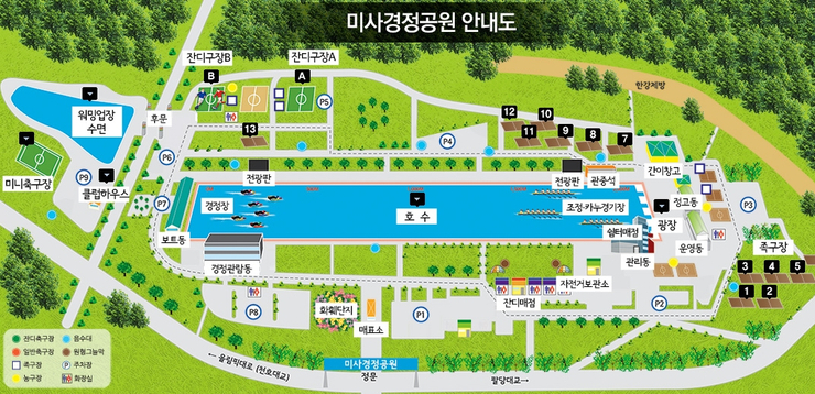 아래 공식홈페이지에서 담아온 미사경정공원 안내도를 확인해보면,