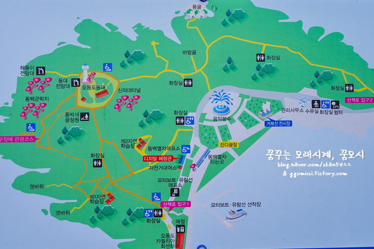 이 후 음악분수 → 매점 → 산책로 입구1 → 오동도 등대 → 동백꽃전망대 →