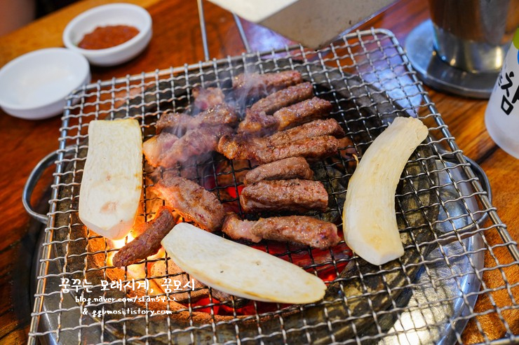 먼저 고기를 사고 테이블을 잡으면 되는데요.