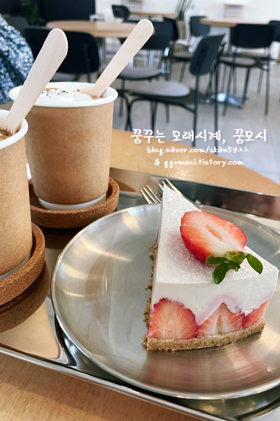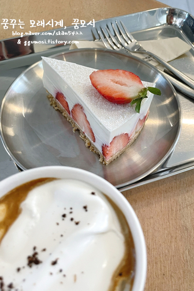 라님과 둘 다 밀크로 골랐구요. 생딸기 크림치즈 케이크도 추가 했어요.