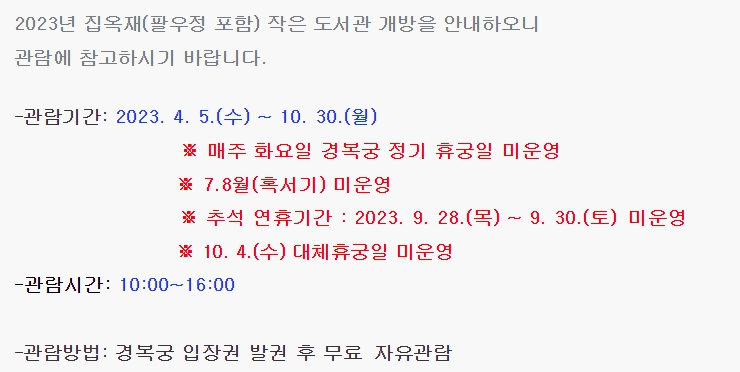| <경복궁Gyeongbokgung> 2023년 생과방 하반기, 경복궁에서 마주한 특별한 시간+궁궐 속 작은 도서관, 집옥재 (3) | 2023.10.17 |