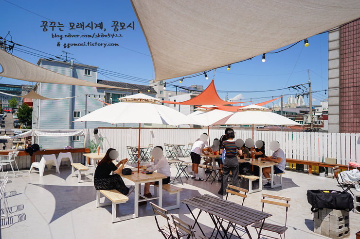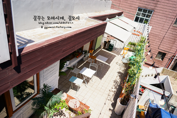 테이블과 의자도 다 달라요. 야외 좌석도 있으며 루프탑까지 있답니다.