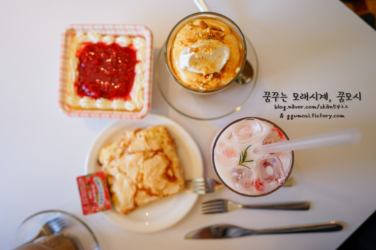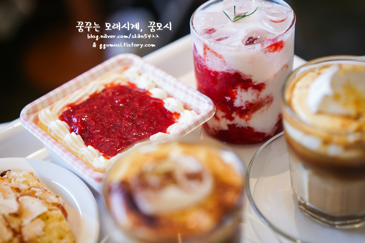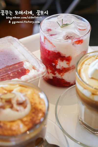 꿈남편은 마가렛크림커피, 저는 딸기라떼, 어머님은 아몬드크림커피를 주문했답니다.