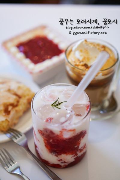 커피맛은 진하고 좋았고 크림도 맛있어요. 딸기라떼도 완전 꿀맛!!!!