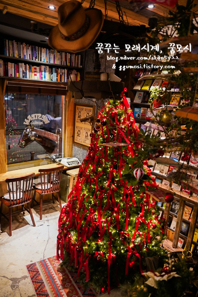 처음 약속을 잡을 때 저는 맨홀커피 웨스턴 책방의 외관과 빨간 리본 트리를 보고