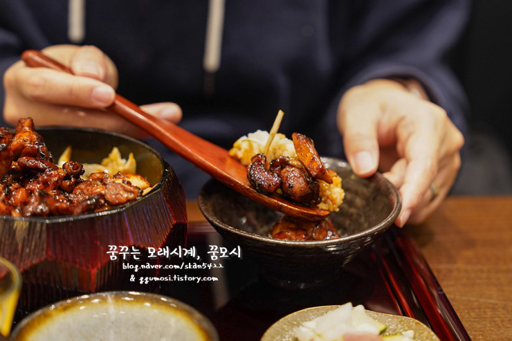 차란!!!! 고온의 대나무 숯에 구운 닭다리에 열시간 이상 끓여 낸 비법 소스를 더한 토리마부시와
