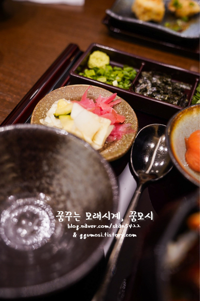꿈부부는 쪽파와 김, 와사비 등을 넣은 후 오차츠케를 넣어서 맛보니 제일 맛있어서