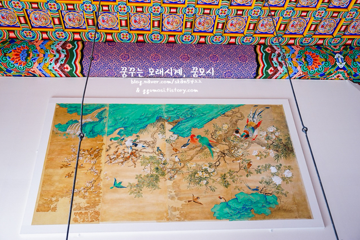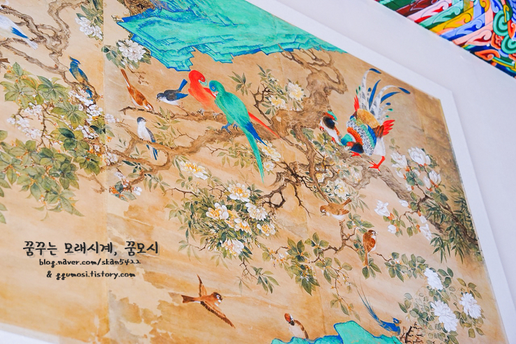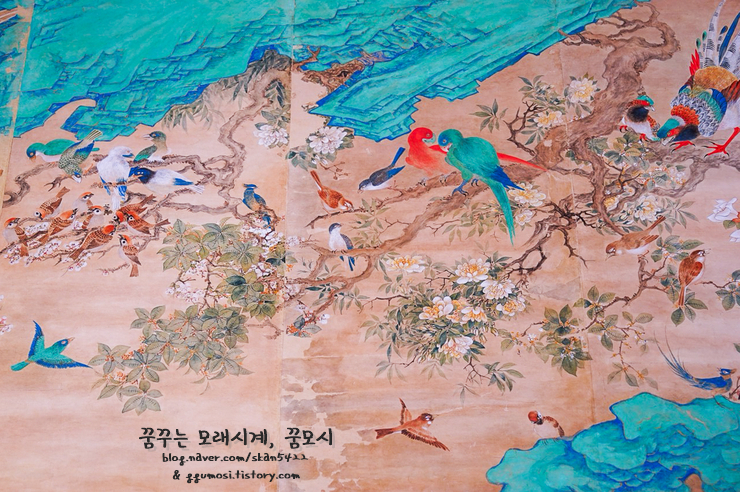 즉, 다정한 암수 앵무새의 모습을 통해 교태전의 주인이었던 왕비가 왕과 함께 해로하기를 바라는 의미를 담아낸 것입니다.