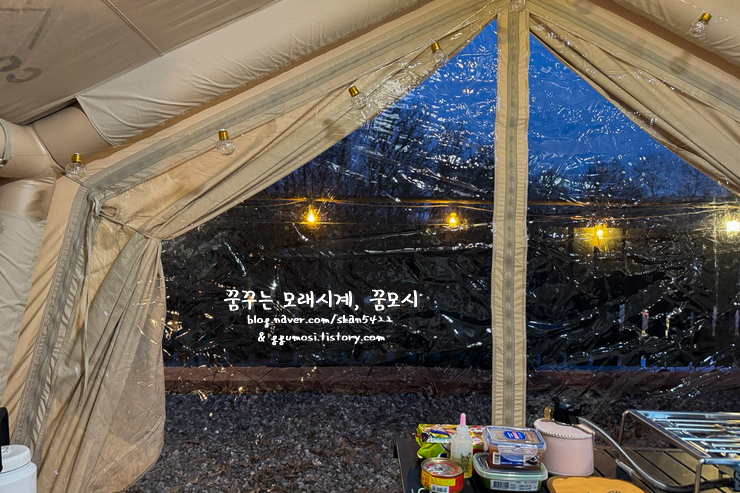 저희가 이 날 텐트를 처음 펼친거라... 환기를 좀 오래하고