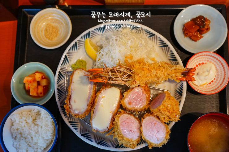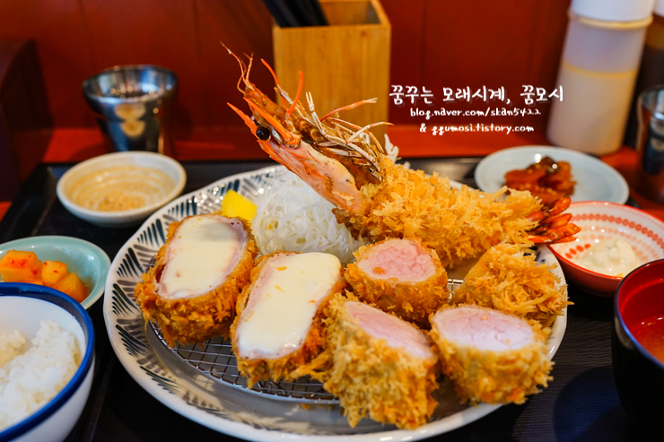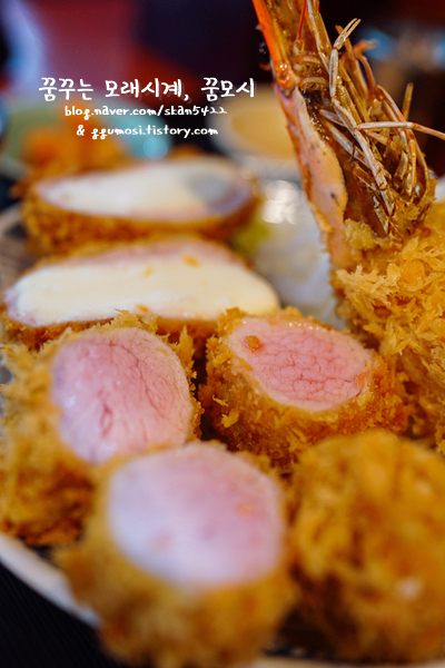 치즈+히레 모듬세트에 새우 추가, 그리고 로스+히레 모듬세트.