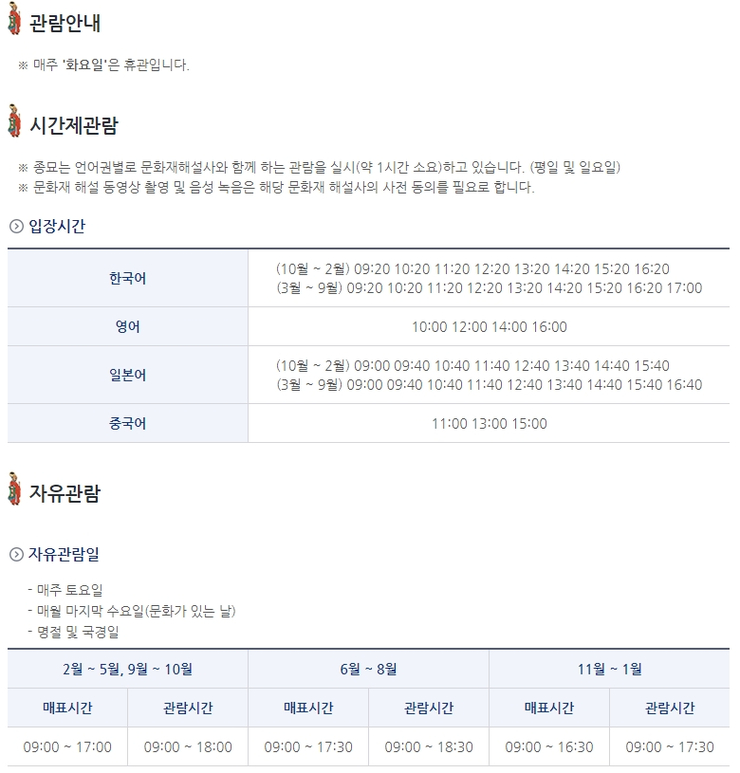 관람시간 및 휴관일, 역사적 내용은 공식홈페이지와 안내지에서 담아왔으며
