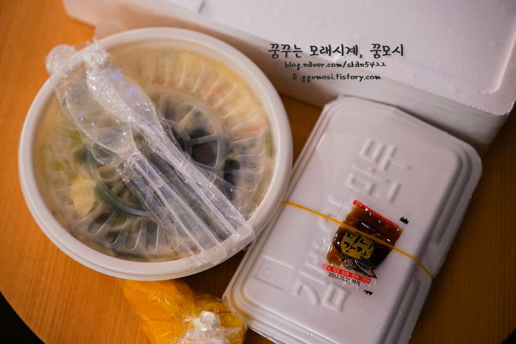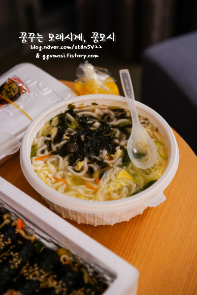 김밥이랑 만두를 사다보니 국물 있음 좋겠다 싶어... 칼국수도 주문한건데.... 지금 생각해도 넘 아까워요...