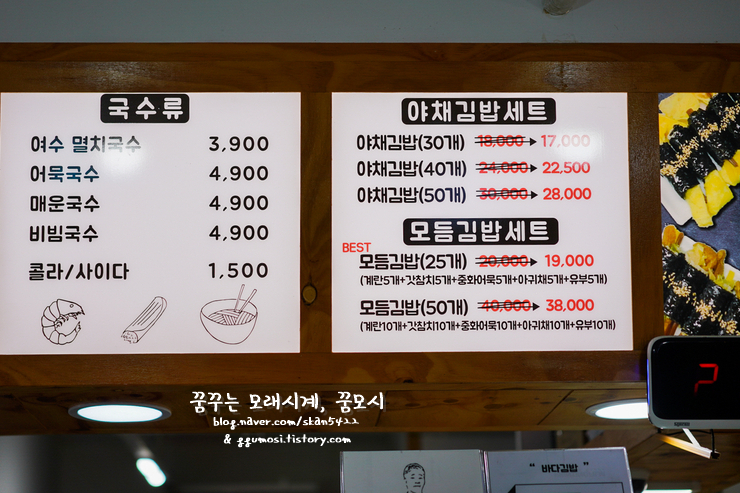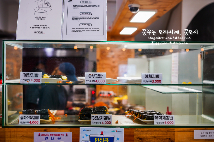 곧바로 들어가 군만두와 칼국수 포장 요청 후 바다김밥을 찾아갔습니다.