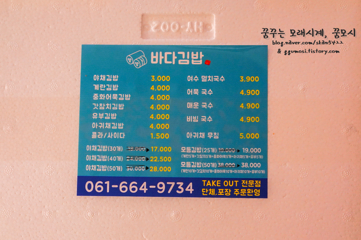 바다김밥은 예약을 해야한다는 정보를 미리 입수했어서 차타고 나오면서 전화를 했었는데