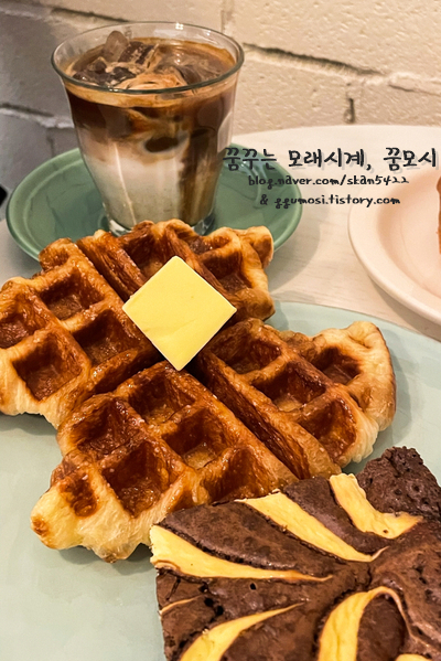 버터 크로플은 좀 더 고소한 맛이 나고, #크림치즈브라우니 도 맛있었습니다.