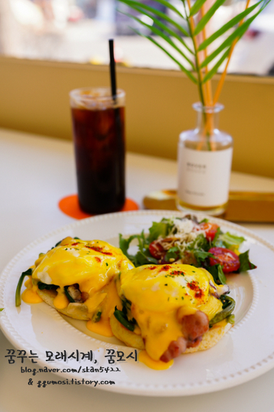 꿈남편은 에그베네딕트와 아메리카노를 주문했어요.