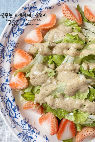 이번에도 드레싱은 참깨드레싱에 곁들여 먹었어요.
