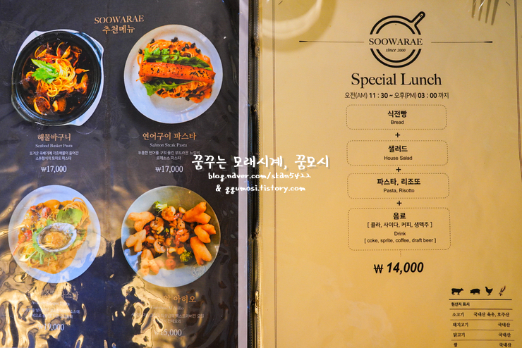 #Soowarae Special Lunch를 골랐고, 빠네스파게티와 토마토 해물 리조또를 선택했습니다.