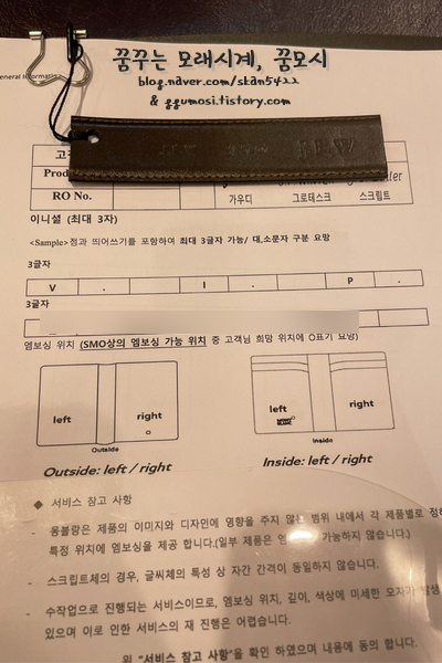 아!! 각인서비스 받으러 가실 때. 보증서를 비롯한 모든 서류를 전부 들고 가세요 ㅋㅋ