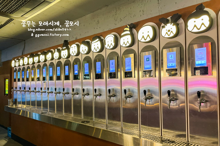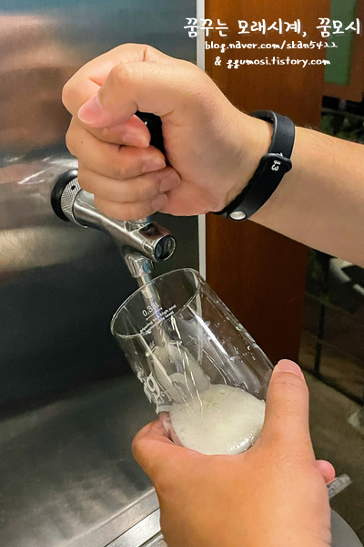 착용한 팔찌를 이용해서 맥주기계?에 태그하고 원하는 양만큼 맥주 담아오기.