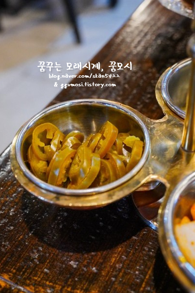 피클이랑 할라미뇨 등 기본 반찬이 나오고