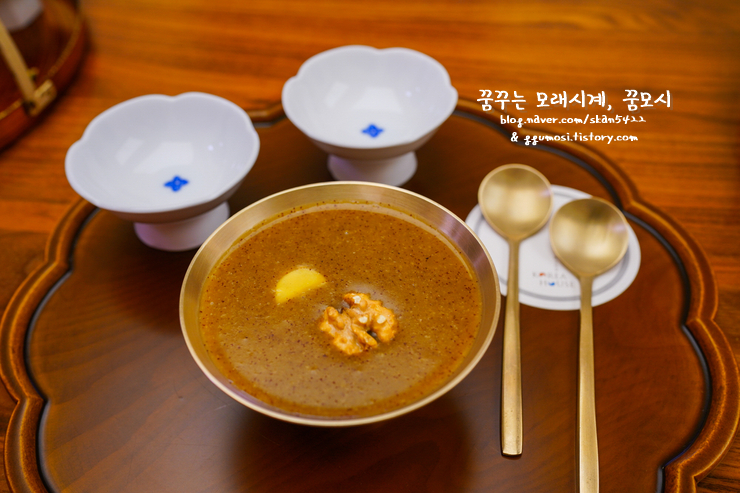 다과상과 함께 나온 호두대추죽.