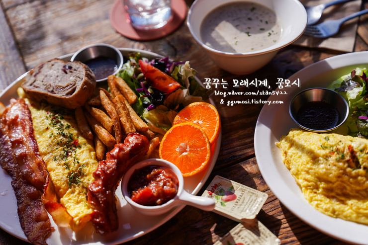 꿈부부는 홀리데이 브랙퍼스트와 영양가 만점 오믈릿으로 주문 완료.