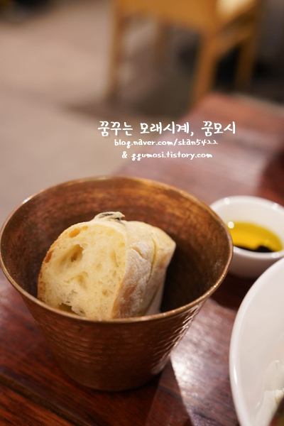 주문하고 얼마 지나지 않아 식전빵이 나옵니다.