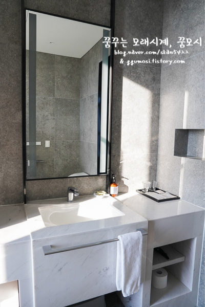 객실로 들어가자마자 수납장이 있고 정면으로 욕실이 보입니다.