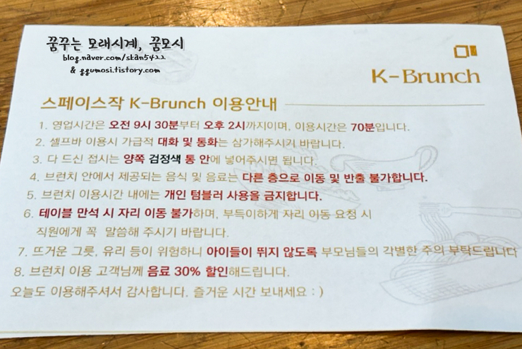 #스페이스작브런치 를 즐길 수 있는 시간은 오전 9시 30분~오후 2시까지이며 이용시간은 70분이에요.