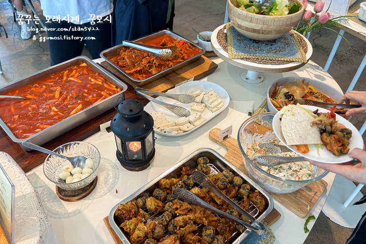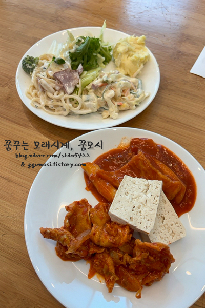 파스타와 스프, 간단한 한식, 떡볶이와 모듬 튀김, 베이커리와 커피, 요거트 등이 있었는데
