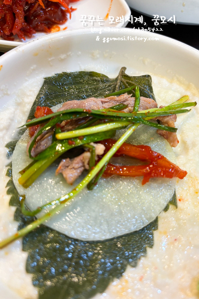 오리고기와 부추까지 더해주고 마지막에 마를 듬뿍 넣어서 싸먹으면?!?!!!