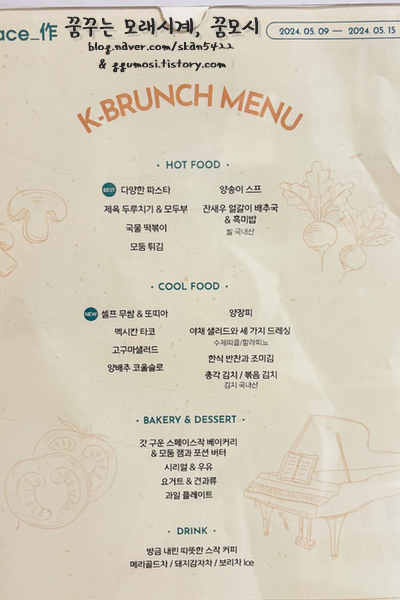 브런치 메뉴 소개는 그때 그때 업데이트가 되는 듯 하니 방문하실때 미리 확인하고 가시면 될 거 같아요.