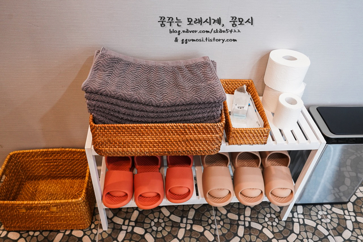 수건과 슬리퍼도 아주 넉넉하게 준비되어 있습니다.