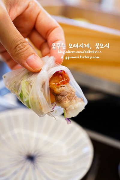 그냥 편백찜만 맛보기도 하고 월남쌈에도 찜 고기 넣어 싸먹었어요.
