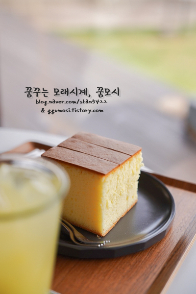 카스테라는 보드라운 색감에 은은한 유자향을 느낄 수 있답니다. 꽤나 맛있어요!!