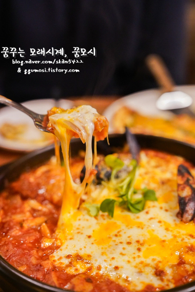 그래도 뚝배기에 담긴 요리 맛보고 싶어 마리나라 리조또 주문했는데 또 치즈 듬뿍.. ㅋㅋ