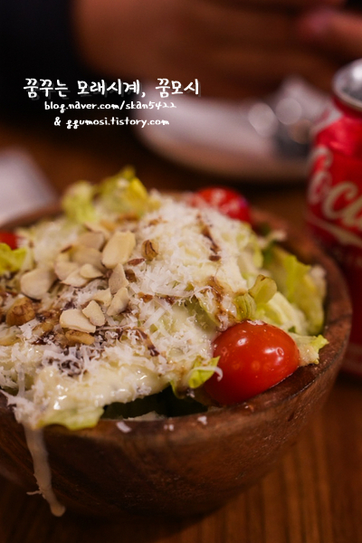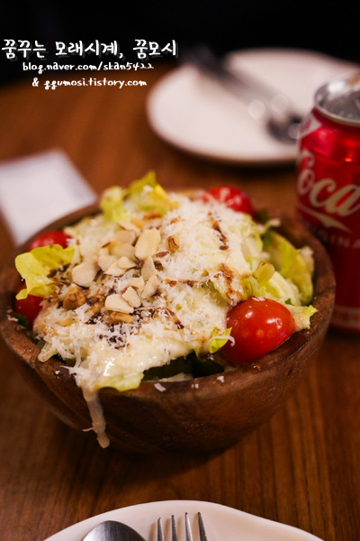 하우스 샐러든는 나무 그릇에 담겨 나오고 양도 사이드로 맛보기 좋았는데