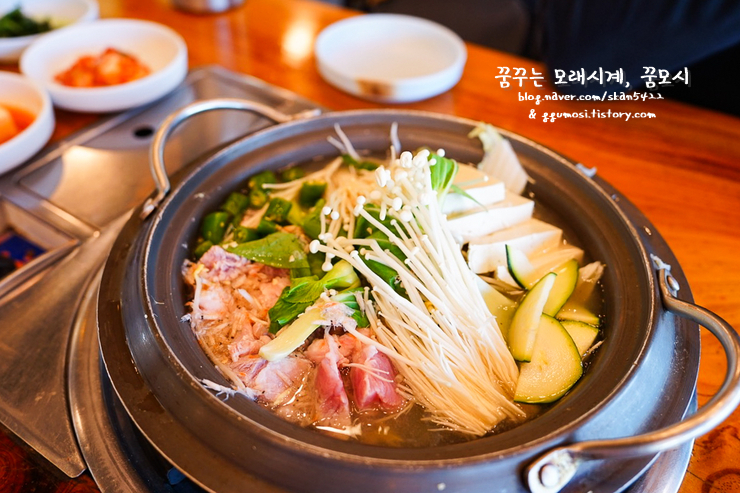 주문하고 얼마 지나지 않아 전골과 반찬들이 나옵니다.