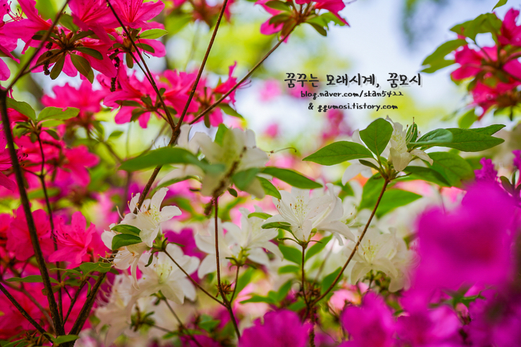 조금은 빛을 잃은 분홍색 철쭉사이에 생기발랄한 흰철쭉.