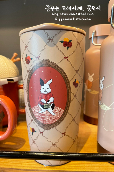 귀여운 토끼 그림이 가득한 텀블러와 머그컵들