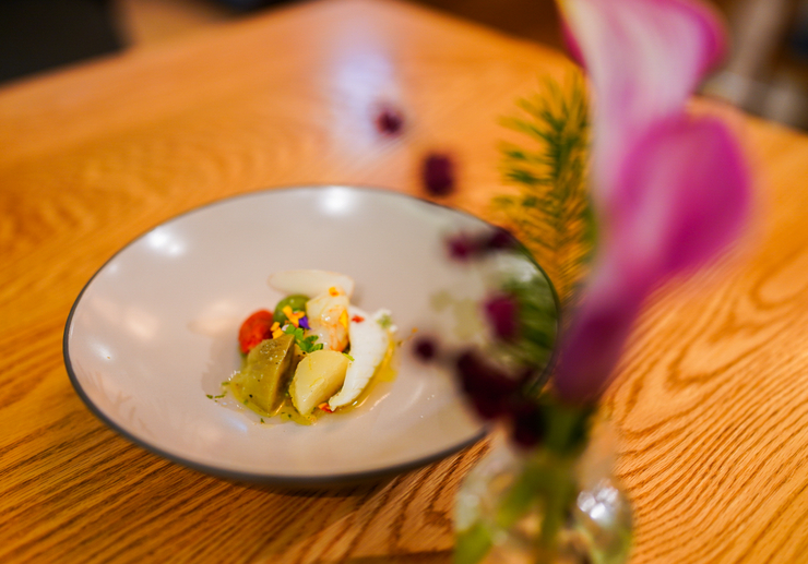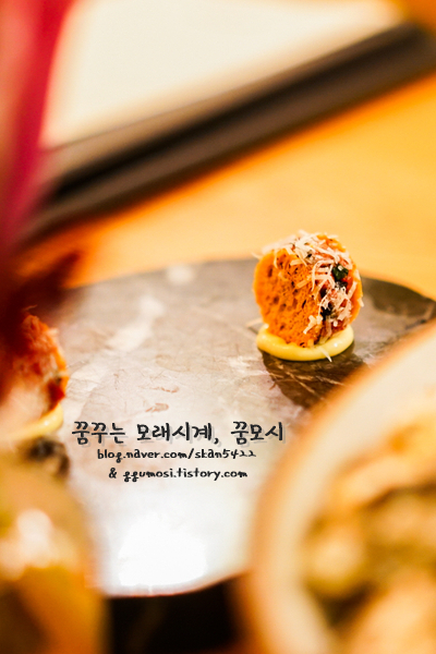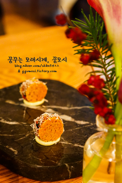 웰컴 디쉬와 오늘의 에피타이저가 이어서 나옵니다.