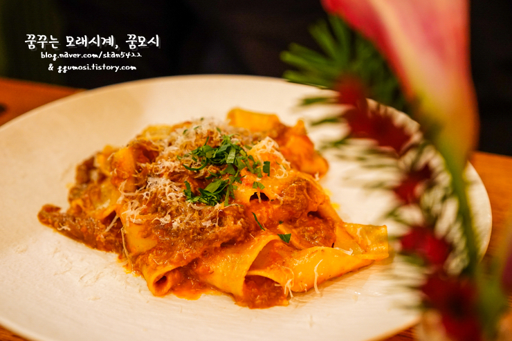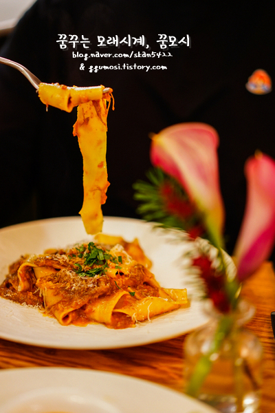 꽃갈비 라구 생면 빠빠델레 입니다.