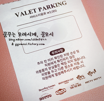 아!! 주차장은 레스토랑에서 20발자국? 정도로 가까우며 3천 원의 발렛비용은 있으니 참고하세요.